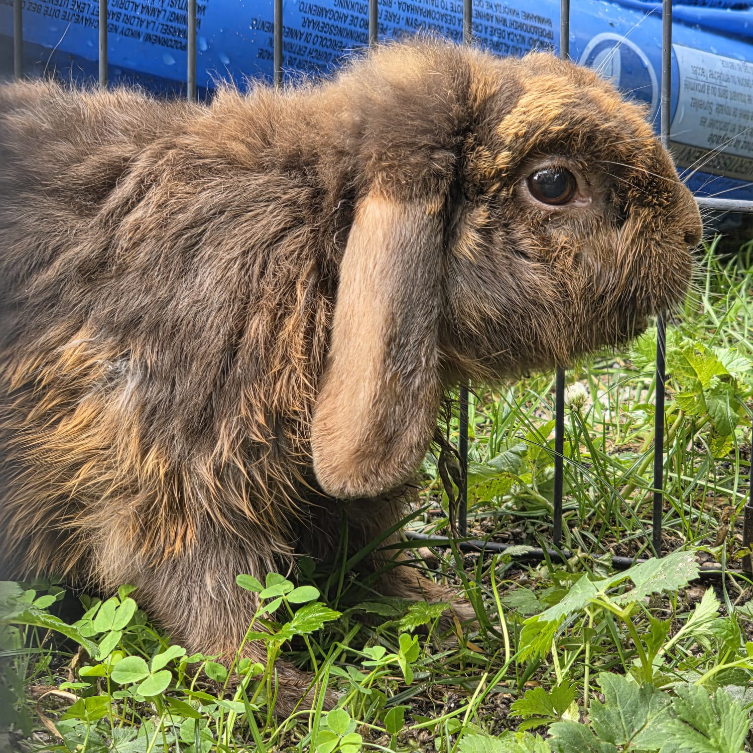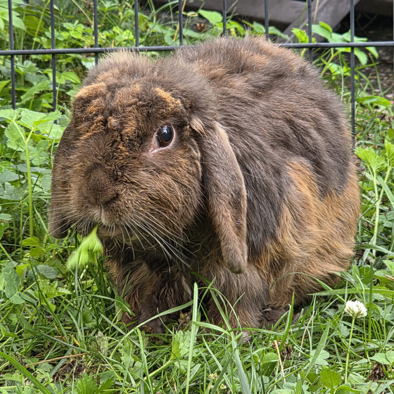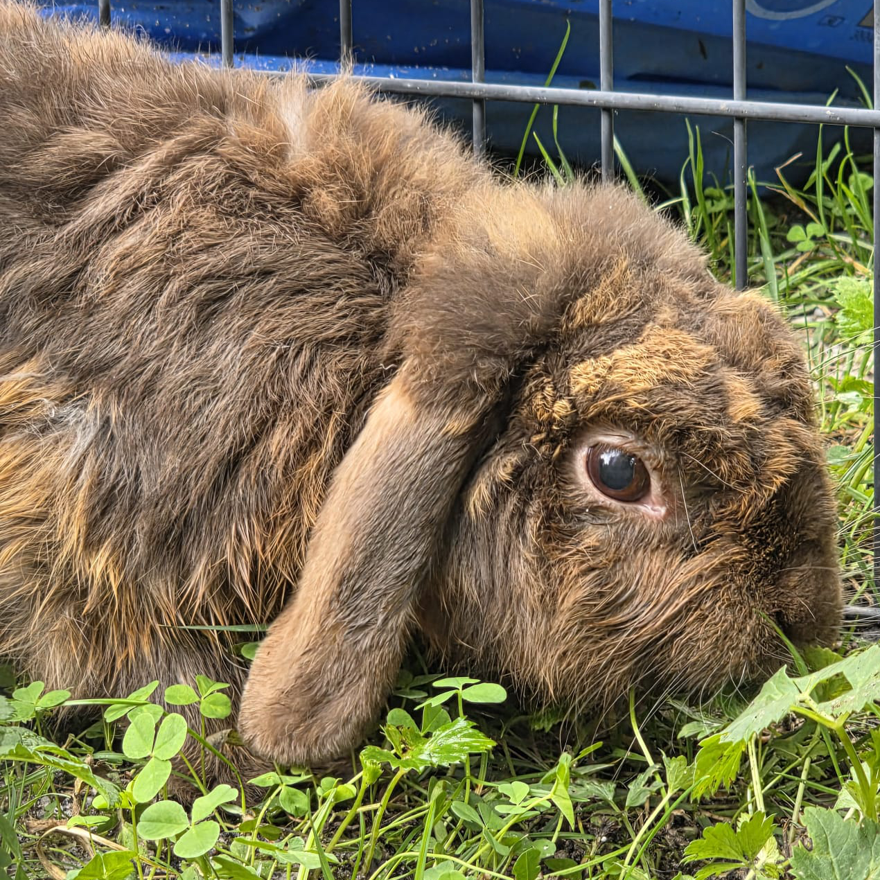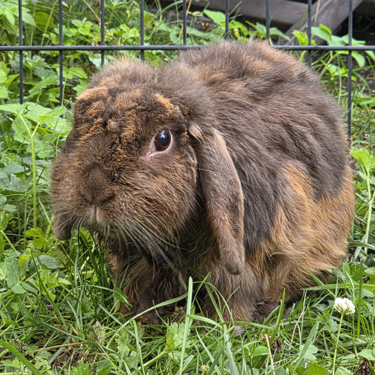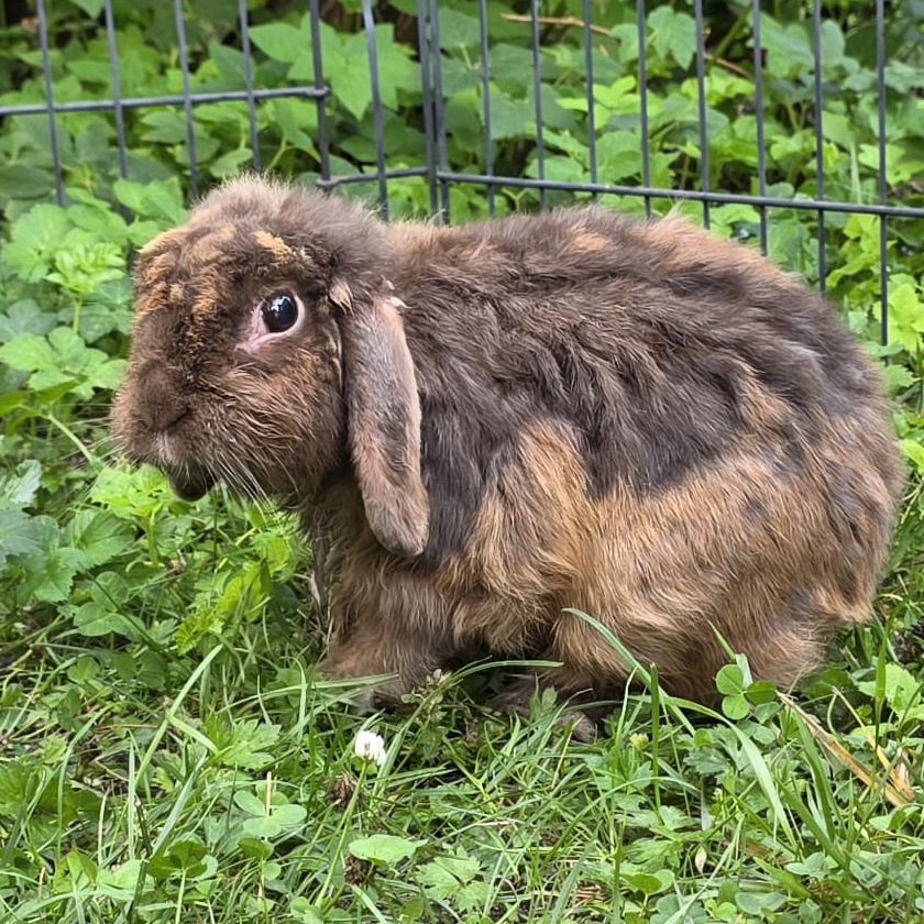 Nach dem Tod ihres Partners lebt Belle allein, ist zutraulicher geworden und lässt sich häufiger streicheln. Leckereien wie Sonnenblumenkerne oder Erbsenflocken nimmt sie gern aus der Hand. Belle wird regelmäßig tierärztlich kontrolliert, da sie ein leichtes Stufengebiss hat. Nach mehreren Zahnbehandlungen kommt sie gut zurecht; das letzte CT mit OP war im Herbst 2024. Die Zähne sollten weiterhin regelmäßig überprüft werden. Im Alter zeigt sich ihr Stoffwechsel am Fell – sie wirkt manchmal zerzaust. Während des Fellwechsels bekommt sie täglich ein paar Sonnenblumenkerne und etwas Leinöl. Bürsten genießt sie sehr und freut sich sicher, wenn ein neuer Partner bald die Fellpflege übernimmt. Belle kennt kein handelsübliches Futter, sondern bekommt frisches, grünes Blattfutter und Wiese: z.B. Chicorée, Radicchio, Kohl, Petersilie, Dill, Schafgarbe, Zweige, Wildkräuter und Gräser. Für sie wünschen wir uns ein großzügiges Außengehege mit einem kastrierten Rammler, der zu ihrem selbstbewussten Wesen passt. Belle wurde im Juli 2025 zuletzt gegen Myxo und RHD 1 + 2 geimpft. Wir möchten unseren Tieren lange Fahrstrecken ersparen und hoffen auf Anfragen im Umkreis von max. 100 Kilometern. |