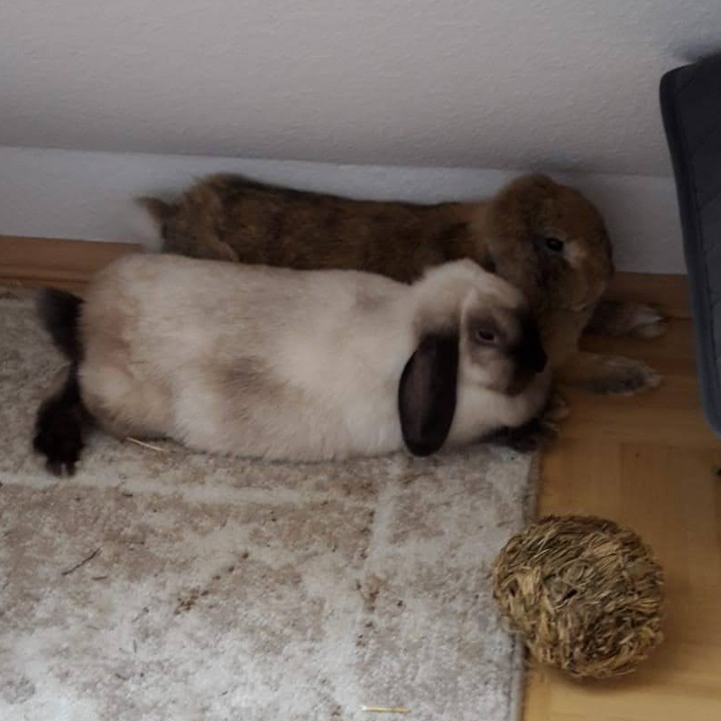 Pu ist die helle Häsin des Duos. Sie ist eher ruhig, beobachtet aufmerksam und zeigt ihre neugierige Seite besonders, wenn es etwas Neues zu entdecken gibt. Buddeln gehört zu ihren liebsten Beschäftigungen. Muckel, der dunkle Rammler, ist dagegen ein richtiger Wirbelwind: aktiv, unternehmungslustig und mit einem Talent fürs Hochspringen. Zusammen ergänzen sie sich wunderbar – sie ist die überlegte Entdeckerin, er der fröhliche Draufgänger. Beim Futter sind beide wahre Feinschmecker. Sie knabbern mit Begeisterung an Äpfeln, freuen sich im Frühjahr über süße Erdbeeren und genießen eine bunte Salatauswahl. Besonders Haselnuss-Zweige stehen bei ihnen hoch im Kurs. Pu und Muckel sind gesund, geimpft gegen Myxomatose und RHD und freuen sich auf ein artgerechtes Zuhause mit ausreichend Platz und Abwechslung. Sie verstehen sich prima miteinander und müssen nicht zwingend zu weiteren Kaninchen dazu. Wir möchten unseren Tieren lange Fahrstrecken ersparen und hoffen auf Anfragen im Umkreis von max. 100 Kilometern. |