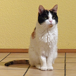 | Freigänger/Hauskatze: | Wohnungskatze – keine Einzelhaltung! Schön wäre ein Platz bei einer weiteren Katzenoma. |