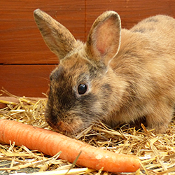 Die junge Kaninchendame ist noch etwas scheu und zurückhaltend, aber die Neugier lockt sie dann doch raus. Wenn das Gehege sauber gemacht wird, untersucht sie den Besen und fragt sich wohl, warum der nicht zum Essen gedacht ist. Wir wünschen uns ein schönes großes Gehege für die wunderschöne Japanerin. Einer oder mehrere Artgenossen wären wunderbar für das agile Kaninchen – da würde sie sich sicher wohlfühlen. |